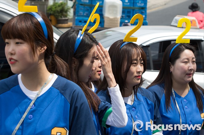 (서울=포커스뉴스) 2016 제20대 국회의원선거를 하루 앞둔 12일 오후 서울 용산구 후암시장 인근에서 진영 서울 용산구 후보의 선거운동원들이 잠시 휴식을 취하고 있다.