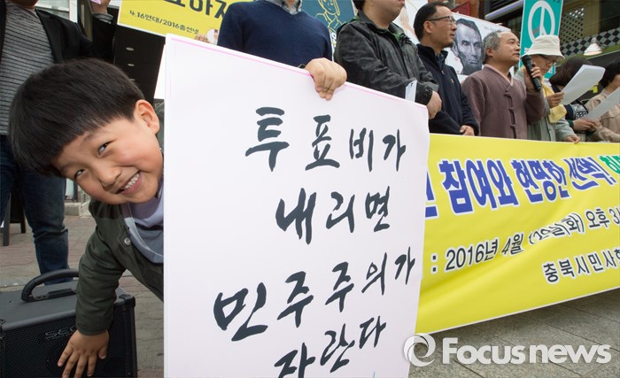 (청주=포커스뉴스) 12일 오후 충북 청주시 성안길에서 충북시민사회단체연대회의 구성원들이 충북도민 투표참여 촉구 기자회견 및 거리 캠페인을 벌이고 있다.