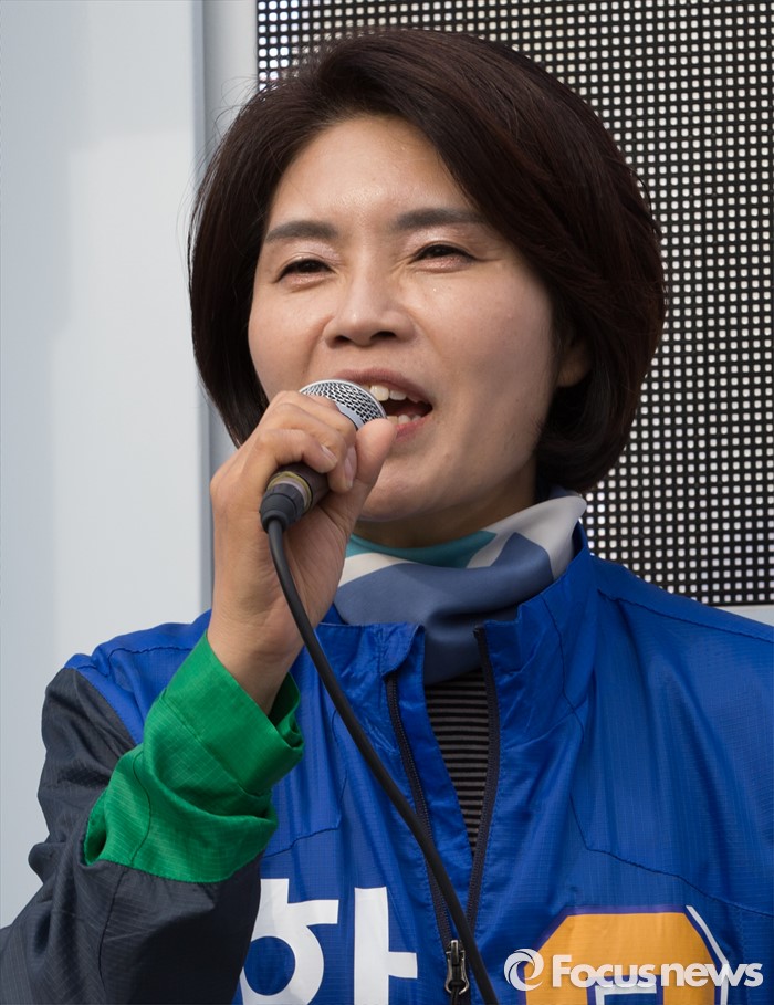 | △ 유권자들에게 지지호소 하는 한정애 |