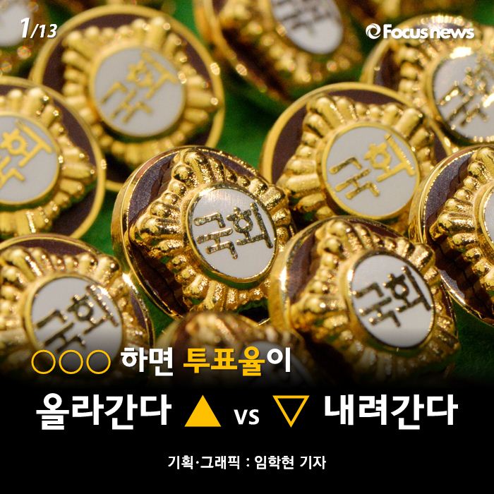 (서울=포커스뉴스) 제20대 국회의원 선거가 하루 앞으로 다가왔습니다. 다들 투표율이 얼마를 기록할 지 궁금해 하는 가운데, 선관위는 이번 총선의 투표율을 50% 후반으로 예측했는데요. 투표율에 영향을 끼치는 외부 요인들에는 무엇이 있을까요? 카드뉴스로 확인해 보시죠.