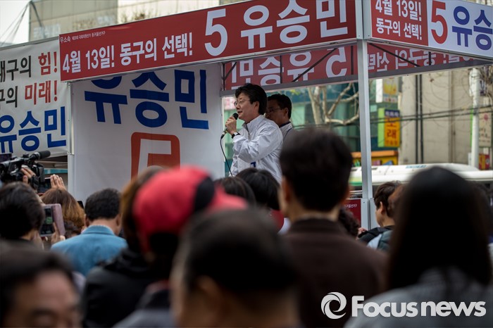 (대구=포커스뉴스) 유승민 무소속 대구 동구을 후보가 12일 오후 대구광역시 동구 방촌시장에서 유세를하며 유권자들에게 한 표를 호소 하고 있다.