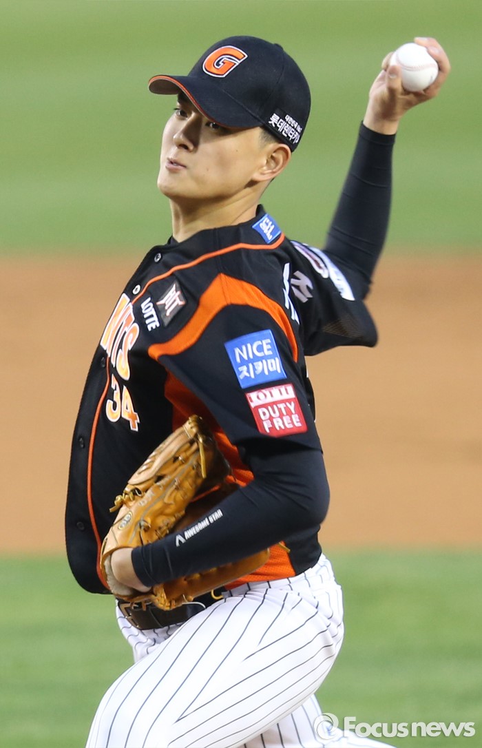 △ 투구하는 롯데 선발투수 김원중