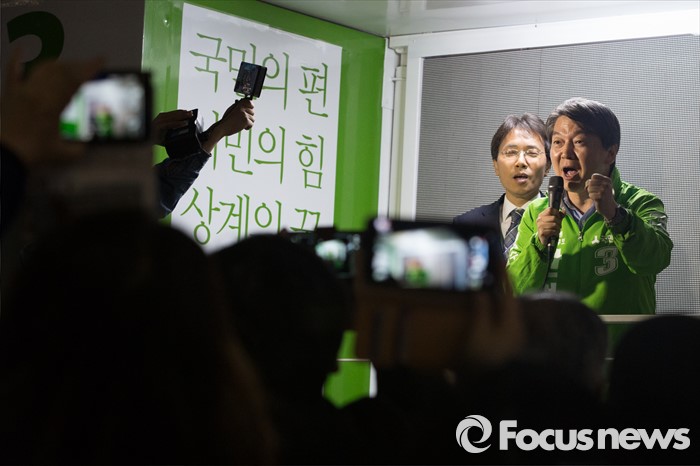 (서울=포커스뉴스) 4.13총선을 하루 앞둔 12일 오후 서울 노원구 롯데백화점 정문 앞에서 안철수 국민의당 상임공동대표가 막바지 선거 유세를 하고 있다.
