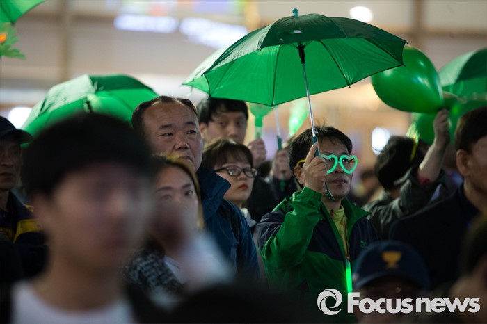 (서울=포커스뉴스) 4.13총선을 하루 앞둔 12일 오후 서울 노원구 롯데백화점 정문 앞에서 시민들이 안철수 국민의당 상임공동대표의 선거 유세를 지켜보고 있다.