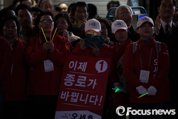 | △ 오세훈 새누리당 종로구 후보, 막바지 선거유세 |