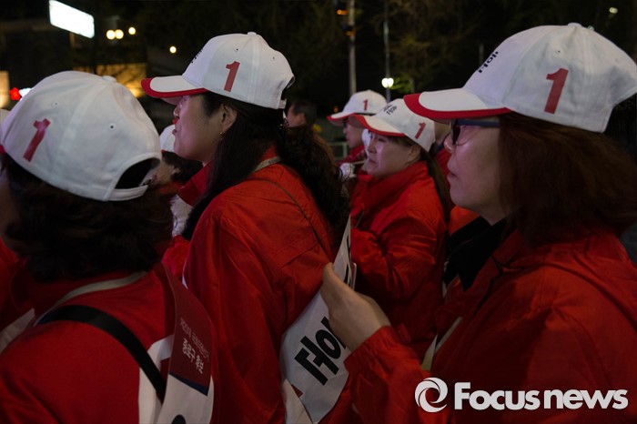 (서울=포커스뉴스) 20대 총선을 하루 앞둔 12일 오후 서울 종로구 경복궁역 일대에서 오세훈 새누리당 종로구 후보측이 막바지 선거유세를 하고 있다.
