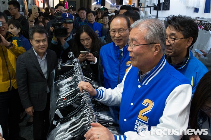 (서울=포커스뉴스) 20대 총선을 하루 앞둔 12일 오후 서울 중구 신평화시장 일대에서 김종인 더불어민주당 비상대책위원회 대표를 비롯한 비례대표 후보들과 마지막 선거유세를 하고 있다.