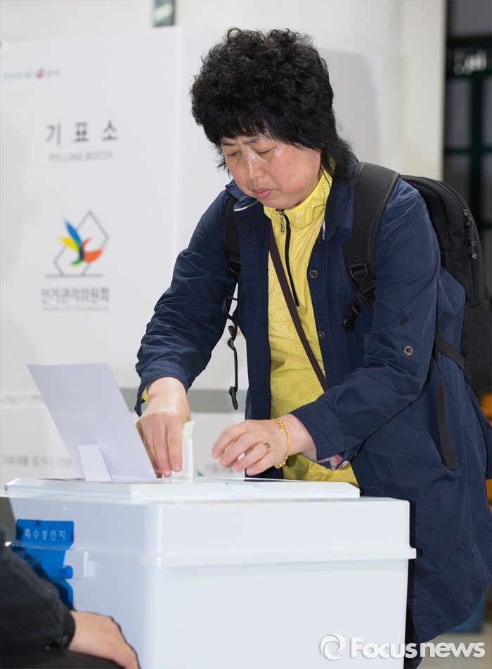 (대전=포커스뉴스) 제20대 국회의원 선거가 시작된 13일 오전 대전 동구 삼성동 제1투표소에서 유권자들이 투표를 하고 있다.