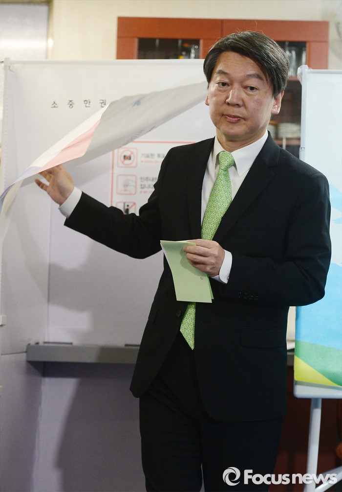 (서울=포커스뉴스) 안철수 국민의당 상임공동대표가 제20대 국회의원선거날인 13일 서울 노원구 상계1동 제7투표소에서 투표를 마친 후 기표소를 나오고 있다.