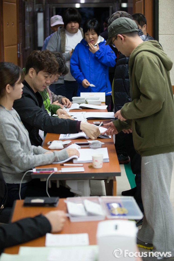 (서울=포커스뉴스) 제20대 국회의원선거일인 13일 오전 서울 성북구의 한 투표소에서 유권자들이 투표를 하고 있다.