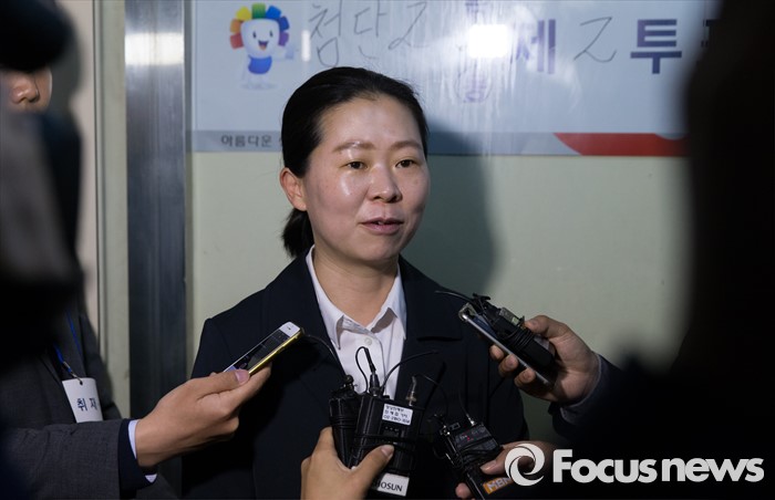(광주=포커스뉴스) 제20대 국회의원 선거일인 13일 오전 광주 광산구 첨단라인1차아파트 경로당에서 권은희 국민의당 광주 광산구을 후보가 투표를 마치고 취재진 질문에 답하고 있다.