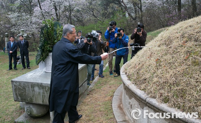 (서울=포커스뉴스) 20대 총선 투표일인 13일 오전 김종인 더불어민주당 비대위 대표 겸 선대위원장이 서울 강북구 수유동에 위치한 자신의 조부인 가인 김병로 선생 묘소를 찾아 성묘를 하고 있다.