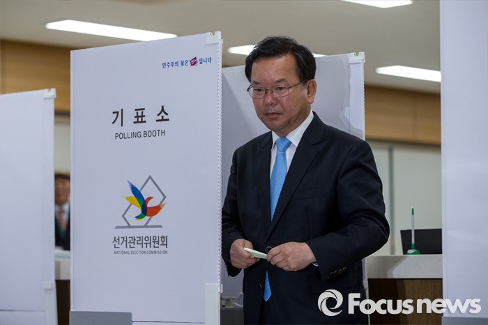 (대구=포커스뉴스) 제20대 국회의원선거날인 13일 오전 대구 수성구 만촌주민센터에 마련된 투표소에서 김부겸 더불어민주당 대구 수성갑 후보가 투표를 하고 있다.