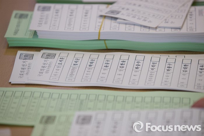 (서울=포커스뉴스) 2016 제20대 국회의원선거날인 13일 오전 서울 종로구 동성고등학교 백주년기념관에 설치된 투표소에 투표용지들이 놓여 있다.