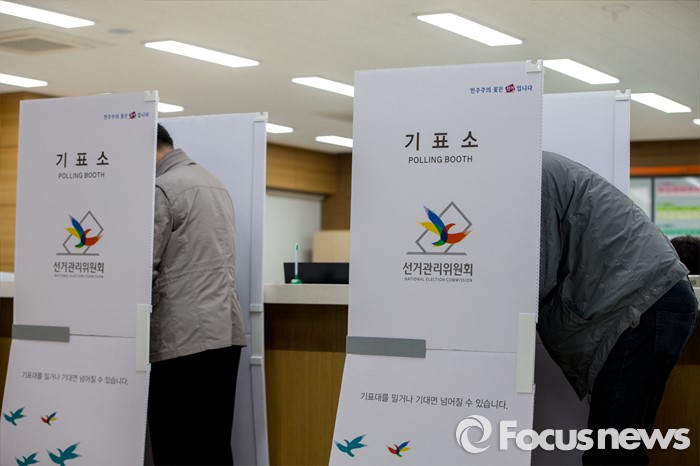 (대구=포커스뉴스) 제20대 국회의원선거날인 13일 오전 대구 수성구 만촌주민센터에 마련된 투표소에서 유권자들이 투표를 하고 있다.