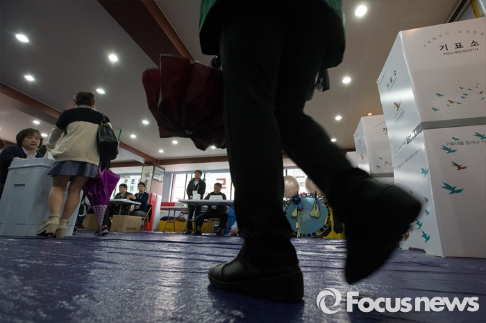 (서울=포커스뉴스) 제20대 국회의원선거일인 13일 오전 서울 강서구 화곡제8동 제5투표소에서 유권자들이 투표하고 있다.