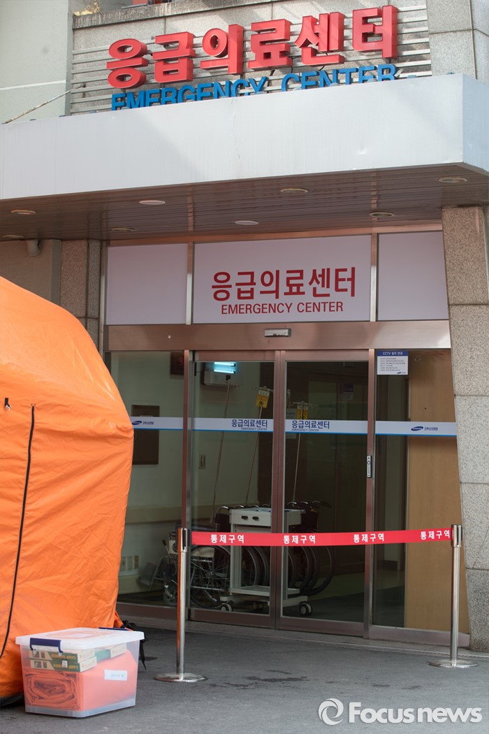(서울=포커스뉴스) 13일 오후 서울 종로구 강북삼성병원 응급실 앞 출입이 통제되고 있다. 최근 한국에 입국한 아랍에미리트(UAE) 국적의 메르스 의심환자가 강북삼성병원 응급실을 방문해 메르스 의심 진단을 받은 것으로 확인됐다.