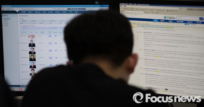 (서울=포커스뉴스) 제20대 국회의원선거일인 13일 오후 경기도 과천 중앙선거관리위원회에 마련된 선거상황실에서 한 직원이 분주히 업무를 보고 있다.