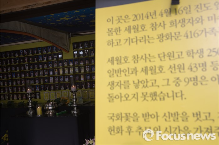 (서울=포커스뉴스) 제20대 국회의원선거날인 13일 오후 서울 종로구 광화문 광장에서 열린 세월호 2주기 추모행사 옆에 마련된 광화문 분향소.