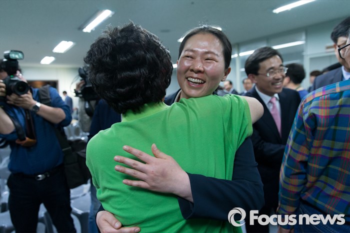 (광주=포커스뉴스) 제20대 국회의원 선거일인 13일 오후 광주 서구 국민의당 광주광역시당에서 권은희 광주 광산구을 후보가 출구조사 결과를 보고 지지자들과 인사를 나누고 있다.