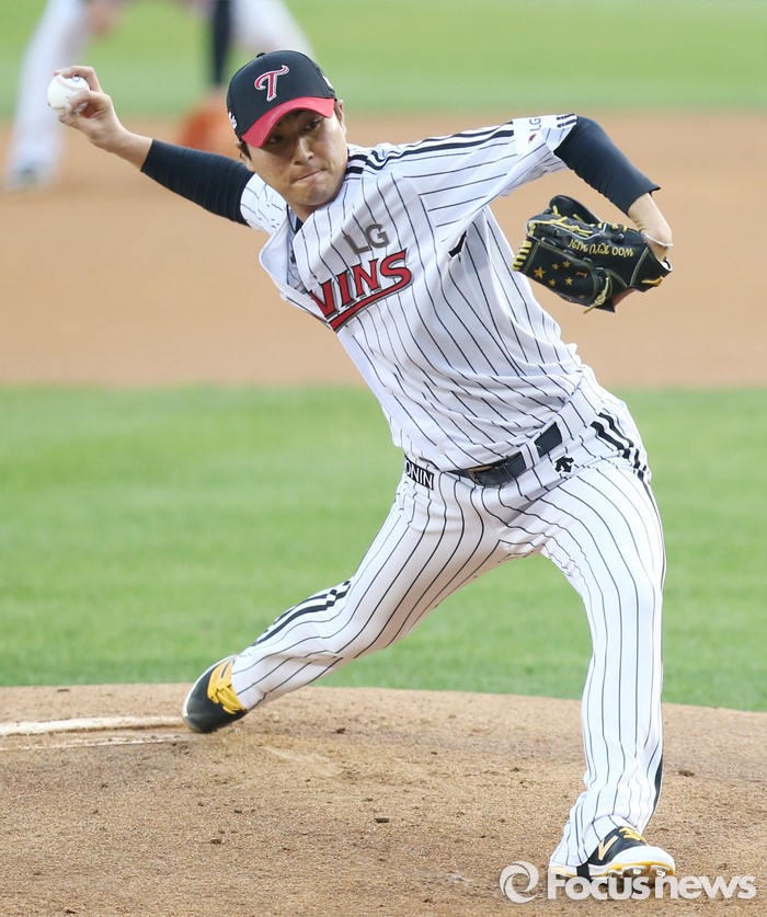 (서울=포커스뉴스) 13일 서울 잠실구장에서 열린 2016 프로야구 롯데-LG 경기에서 1회초 LG 선발투수 우규민이 투구하고 있다.