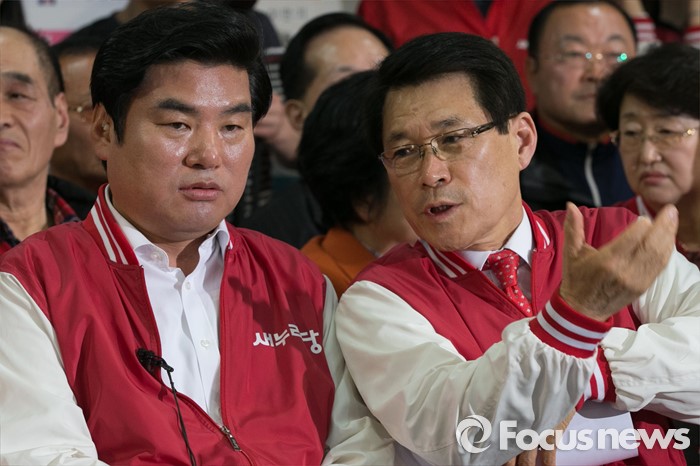(서울=포커스뉴스) 제20대 국회의원 선거날인 13일 오후 서울 여의도 새누리당사에서 원유철(왼쪽) 원내대표와 이군현 공동총괄본부장이 방송 3사의 출구조사를 시청하며 대화하고 있다.