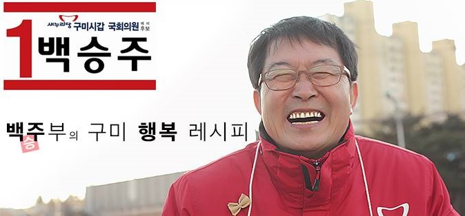 (서울=포커스뉴스) 13일 오후 9시 30분 KBS는 개표율 32.2% 현재 경북 구미갑의 백승주 새누리당 후보가 60.3%를 득표해 당선이 확실하다고 밝혔다.<사진출처=백승주 후보 페이스북>