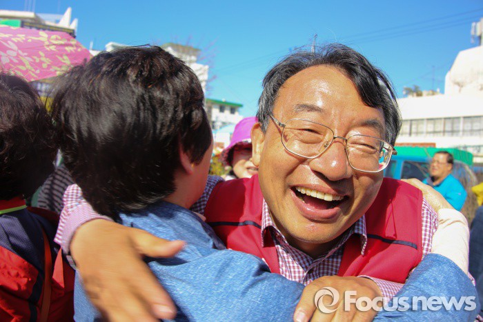 (순천=포커스뉴스) 새누리당 순천 이정현후보가 13일 오후 당선이 확정되자 운동원과 포옹하고 있다. <사진제공=이정현선거사무소>