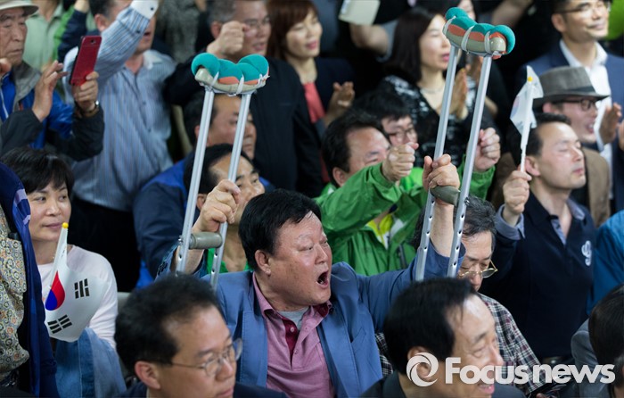 (전주=포커스뉴스) 정동영 국민의당 전주시병 당선인이 14일 오전 전북 전주시 금암동 선거사무소에서 당선이 확정되자 지지자들과 포옹을 하고 있다.