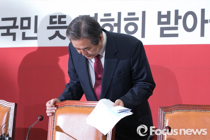 (서울=포커스뉴스) 김무성 새누리당 대표가 14일 오전 서울 여의도 국회에서 열린 중앙선대위 해단식에 참석해 인사하고 있다. 이 자리에서 김 대표는 "선거 참패에 책임을 지고, 오늘부터 대표직을 사퇴한다"고 밝혔다.