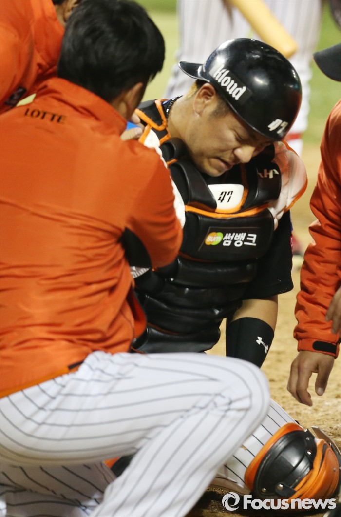 △ 치료받는 강민호