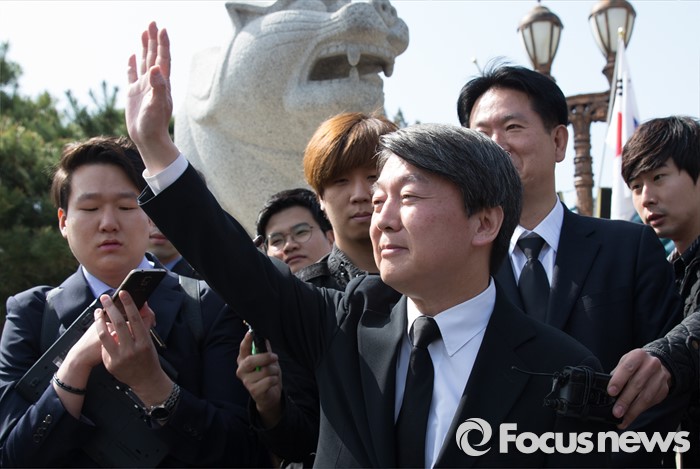 (서울=포커스뉴스) 안철수 국민의당 상임공동대표가 15일 오전 서울 동작구 국립서울현충원에서 현충탑 참배를 마친 뒤 방문객들에게 인사하고 있다.