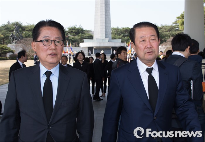 (서울=포커스뉴스) 국민의당 박지원 전남 목포 당선인과 박주선 동구남을 당선인이 15일 오전 서울 동작구 국립서울현충원에서 현충탑 참배를 마친 뒤 대화 하고 있다.