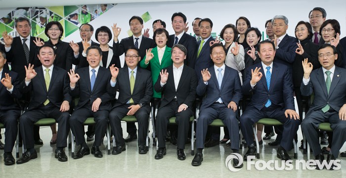 (서울=포커스뉴스) 안철수·천정배 상임공동대표 등 당지도부와 당선자들이 15일 오전 서울 마포구 당사에서 열린 국민의당 당선자 대회 및 선거대책위원회 해단식에서 기호 3번을 그리며 기념사진을 찍고 있다. 앞줄 왼쪽 첫번째부터 장병완 의원, 주승용 원내대표, 박지원 의원, 안 대표, 천 대표. 국민의당은 20대 총선에서 지역구 25석과 비례대표 13석 총 38석의 의석을 석권해 15대 국회 이후 20년 만에 3당 체제를 만들었다.
