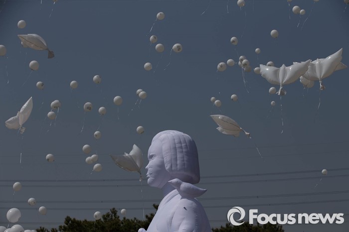 (화성=포커스뉴스) 15일 오전 경기도 화성시 제암리 3.1운동 순국 기념관에서 열린 '4.15 제암, 고주리 학살사건 희생자 추모제'에서 희생자의 넋을 기리는 풍선이 날아가고 있다.