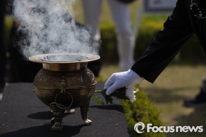 (화성=포커스뉴스) 15일 오전 경기도 화성시 제암리 3.1운동 순국 기념관에서 열린 '4.15 제암, 고주리 학살사건 희생자 추모제' 참석자들이 희생자들의 넋을 기리고 있다.