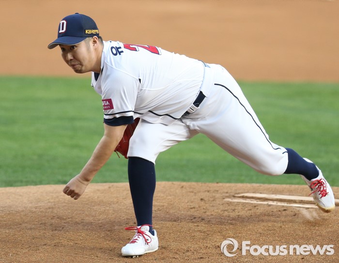 (서울=포커스뉴스) 15일 서울 잠실구장에서 열린 2016 프로야구 삼성-두산 경기에서 1회초 두산 선발투수 유희관이 투구하고 있다.