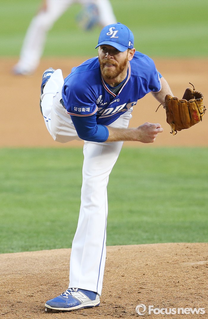 (서울=포커스뉴스) 15일 서울 잠실구장에서 열린 2016 프로야구 삼성-두산 경기에서 1회말 삼성 선발투수 벨레스터가 투구하고 있다.