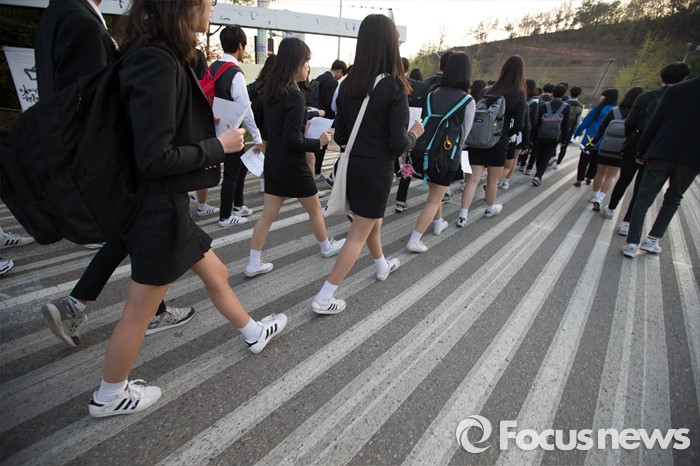 (안산=포커스뉴스) 세월호 참사 2주기를 하루 앞둔 15일 오후 경기도 안산시 단원구 세월호 정부합동분향소에서 안산시 고교학생회장단연합회 학생들이 안산문화광장 추모제 참석하기 위해 행진을 하고 있다.