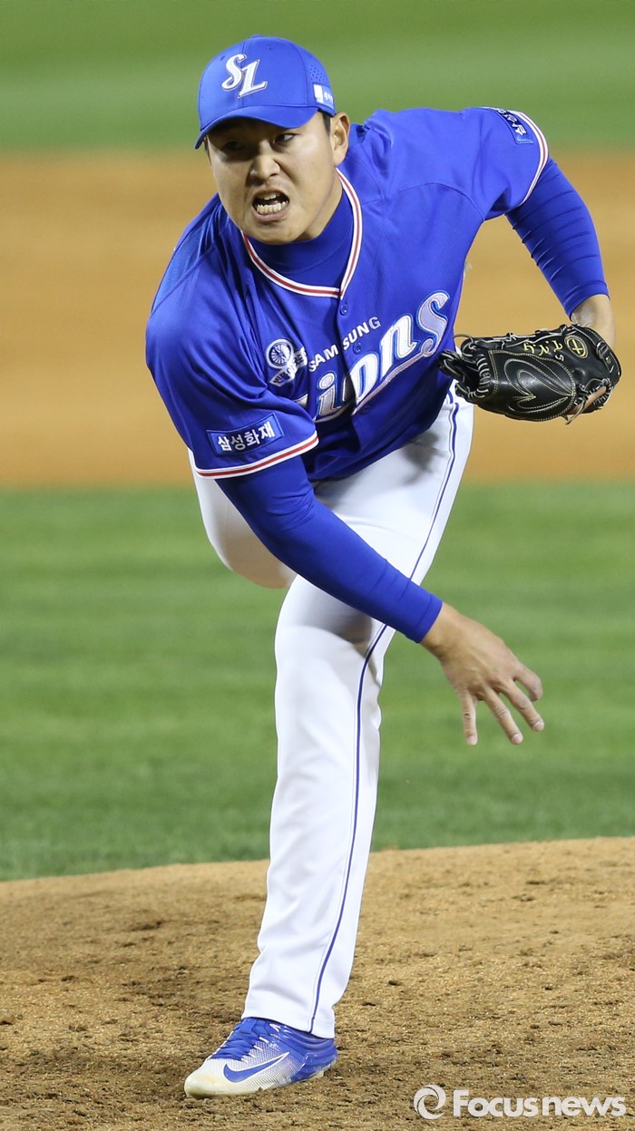 (서울=포커스뉴스) 15일 서울 잠실구장에서 열린 2016 프로야구 삼성-두산 경기 5회말 2사후 등판한 삼성 투수 김동호가 투구하고 있다.