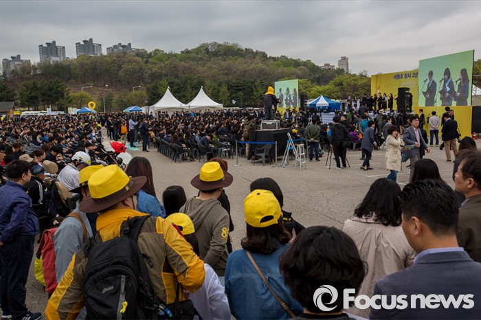(안산=포커스뉴스) 16일 오전 경기도 안산시 단원구 화랑유원지에 마련된 합동분향소에서 '세월호 참사 2년 기억식'이 열리고 있다.