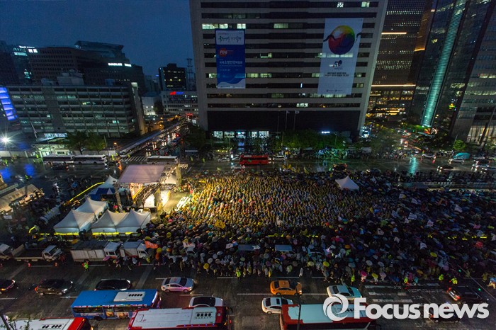 (서울=포커스뉴스) 16일 오후 서울 종로구 광화문 광장에서 열린 '세월호 참사 2주기 전국집중 범국민 추모문화제'에 참가한 유가족 및 시민들이 세월호 참사 진상규명을 촉구 하고 있다.