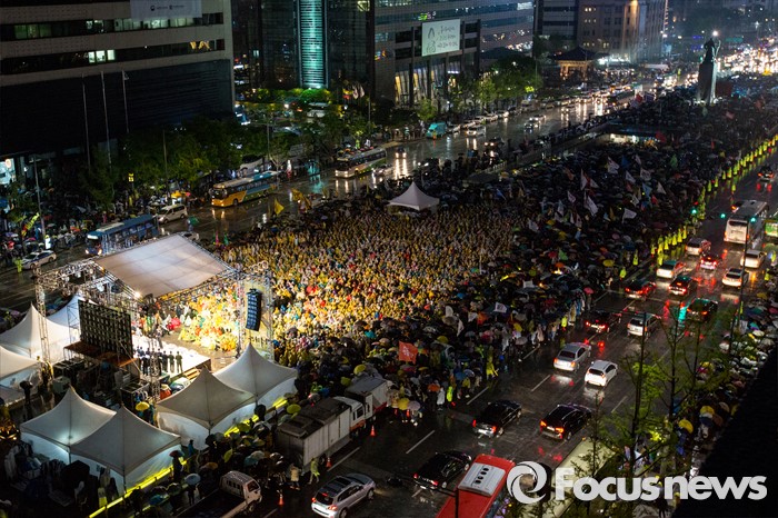 (서울=포커스뉴스) 16일 오후 서울 종로구 광화문 광장에서 열린 '세월호 참사 2주기 전국집중 범국민 추모문화제'에 참가한 유가족 및 시민들이 세월호 참사 진상규명을 촉구 하고 있다.