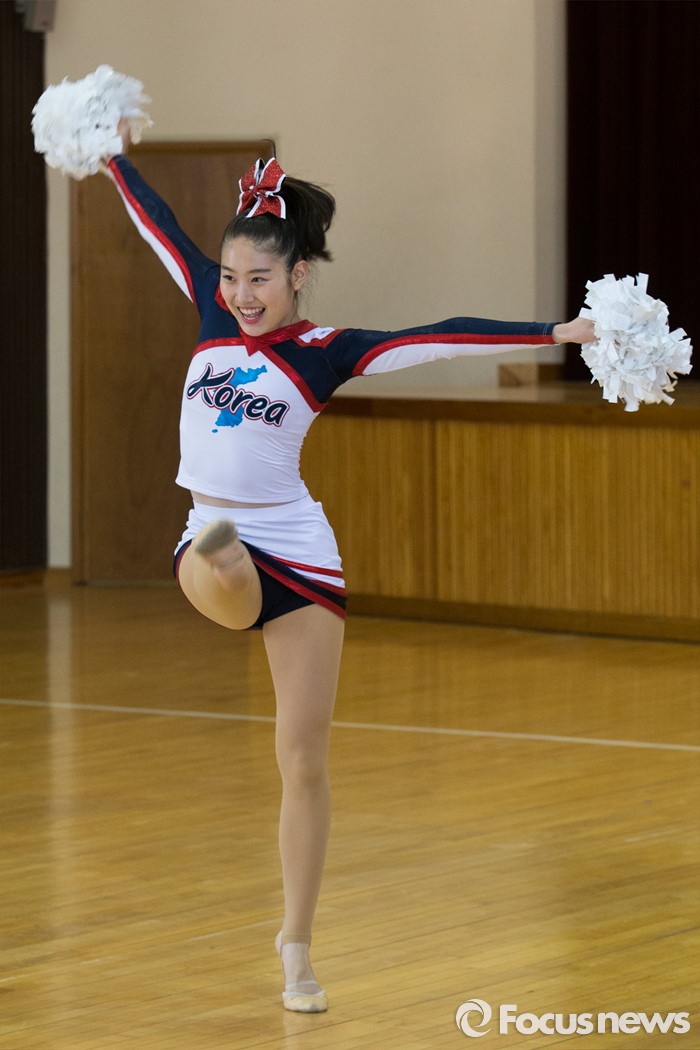 (서울=포커스뉴스) 17일 오후 서울 서대문구 동명여자중학교 체육관에서 열린 '2016 치어리딩 국가대표 선수단 출정식'에 참석한 선수들이 치어리딩 연기를 선보이고 있다.