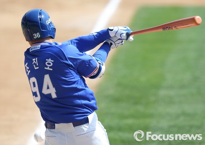 (서울=포커스뉴스) 17일 서울 잠실구장에서 열린 2016 프로야구 삼성-두산 경기 2회초 2사후 삼성 이승엽이 투수앞 땅볼을 치고 있다. 이승엽은 유니폼이 세탁 도중 찢어져 조진호의 유니폼을 입고 출장했다.