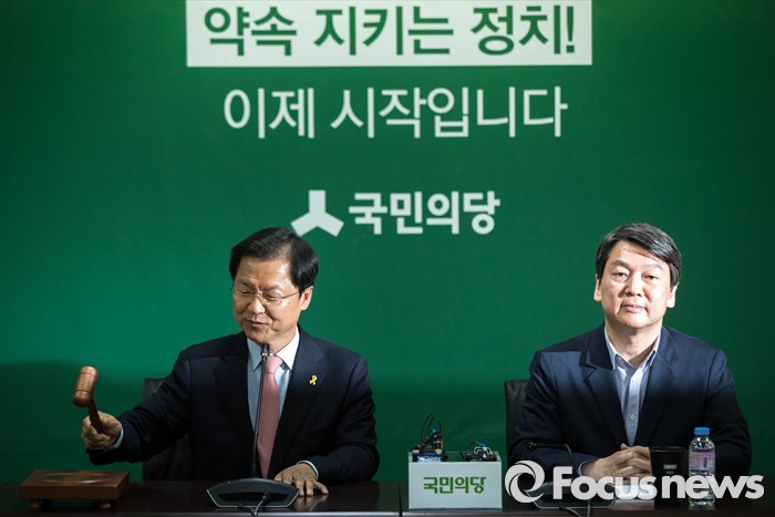 (서울=포커스뉴스) 천정배 국민의당 대표가 18일 오전 서울 마포구 국민의당 당사에서 열린 최고위원회의에 참석, 회의 시작을 알리며 의사봉을 두드리고 있다.