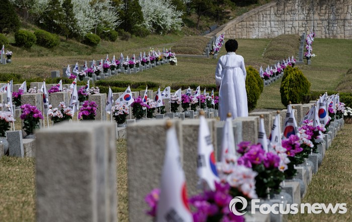 (서울=포커스뉴스) 4·19 혁명 56주기를 하루 앞둔 18일 오전 서울 강북구 국립4.19 민주묘지를 찾은 유가족들이 희생자의 묘소로 향하고 있다.