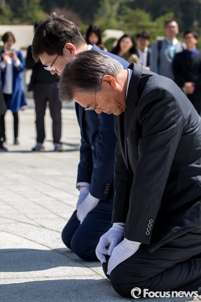 이와 관련해 김 위원장 측 관계자는 <포커스뉴스>와의 전화통화에서 "문재인 전 대표와 김홍걸 위원장이 수행하는 인원 몇 명과 함께 이날 오전 10시 10분 목포에서 출발해 하의도를 방문했다"면서 "당초 김 위원장이 선거 전에 (노무현 전 대통령의 생가가 있는) 봉하에서 하의도로 오려고 했는데 선거가 임박해 당에서 직책을 주는 바람에 방문을 못했기에 이번에 방문하게 된 것"이라고 덧붙였다.문재인 더불어민주당 전 대표와 김홍걸 국민통합위원장이 8일 오전 광주광역시 5.18 민주항쟁 추모탑을 찾아 무릎을 꿇고 참배 하고 있다. 2016.04.08 강진형 기자