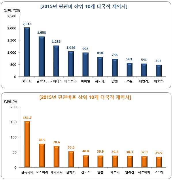 이어 △호스피라코리아(78.5%) △한국메나리니(70.6%) △글락소스미스클라인(53.5%) △한국산도스(40.8%) △한국알콘(39.9%) △한국애브비(39.2%) △한국엘러간(38.3%) △한국세르비에(37.9%) △한국오츠카제약(35.5%) 순으로 판관비율이 높았다.