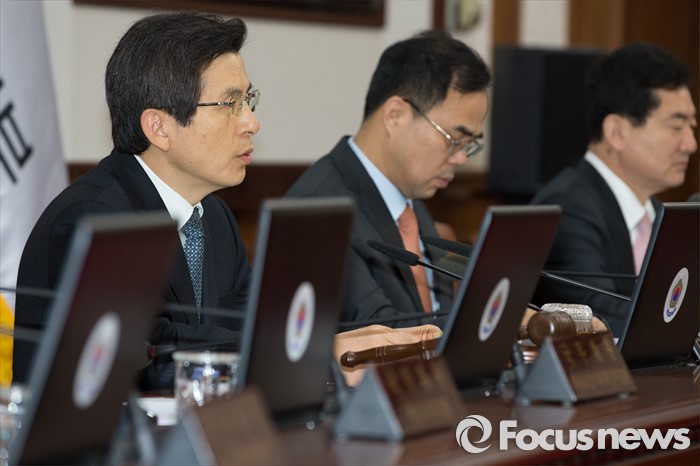 (서울=포커스뉴스) 황교안 국무총리가 19일 오전 서울 종로구 정부서울청사에서 열린 국무회의에 참석해 모두발언을 하고 있다.